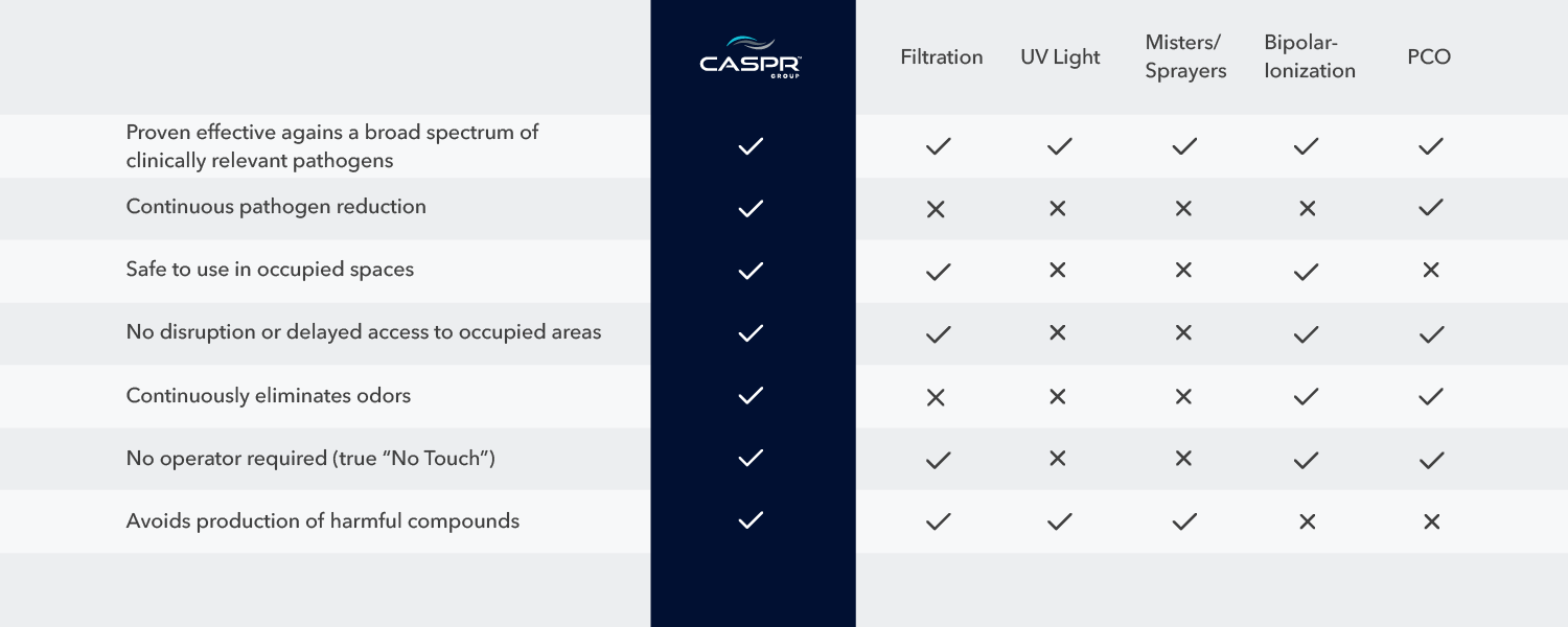 “Knowing that CASPR units are 99.96% effective against bacteria, viruses, and molds, our administration felt that this investment would pay dividends as it would be a much-needed additional protection for our students, faculty, and staff”